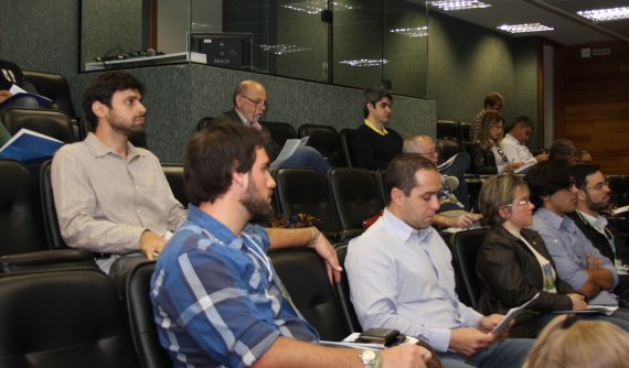 Colegas da ára de esgotos acompanham a Coferência e auxiliam Alexandre nos debates e compartilhamento de informações. Fotos: Neiva Daltrozo