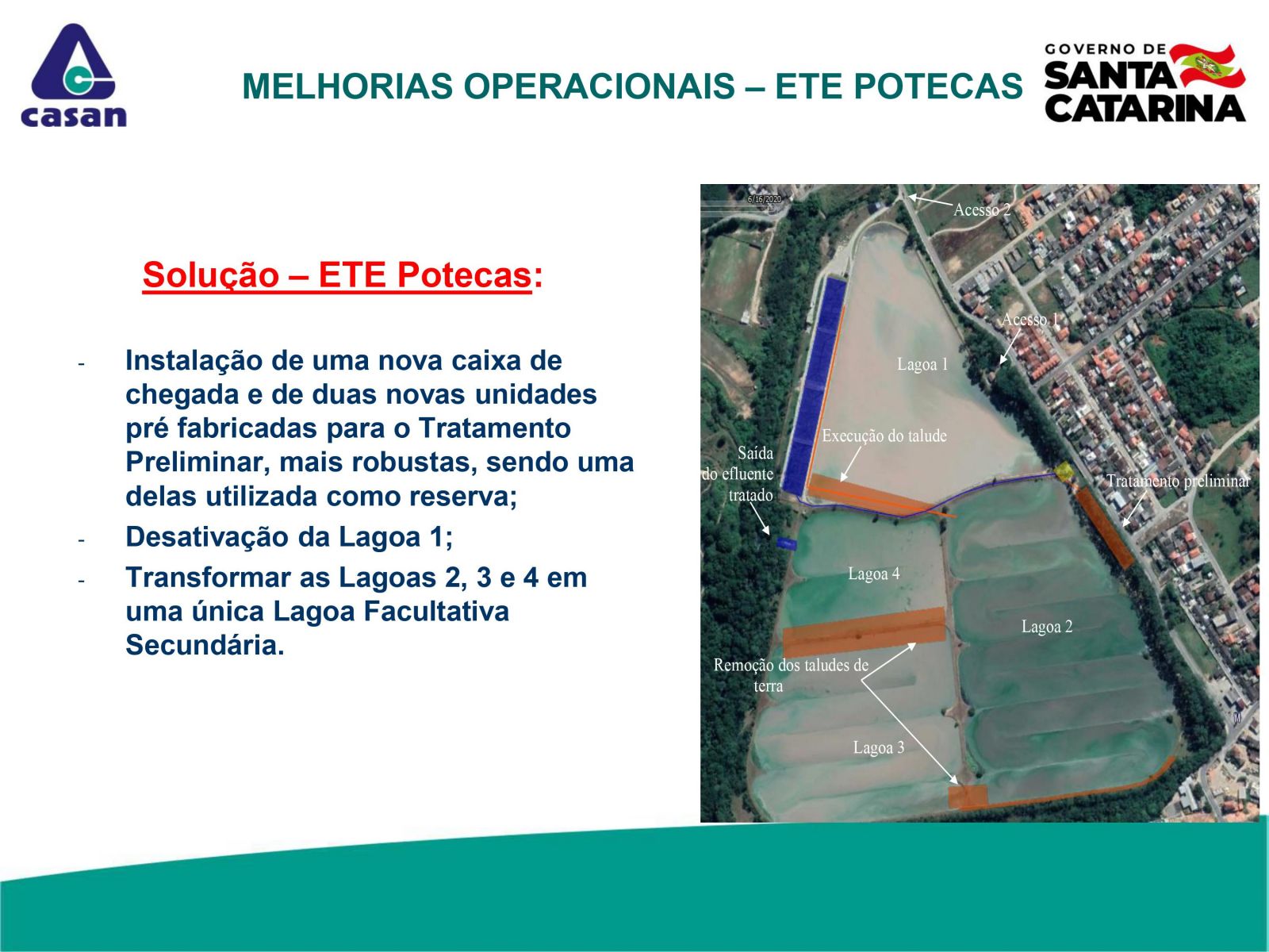 Os detalhes técnicos do projeto de Melhorias Operacional (Desativação da Lagoa 1) e o da nova estação de Tratamento de esgoto (ETE) podem ser conferidos na apresentação abaixo.