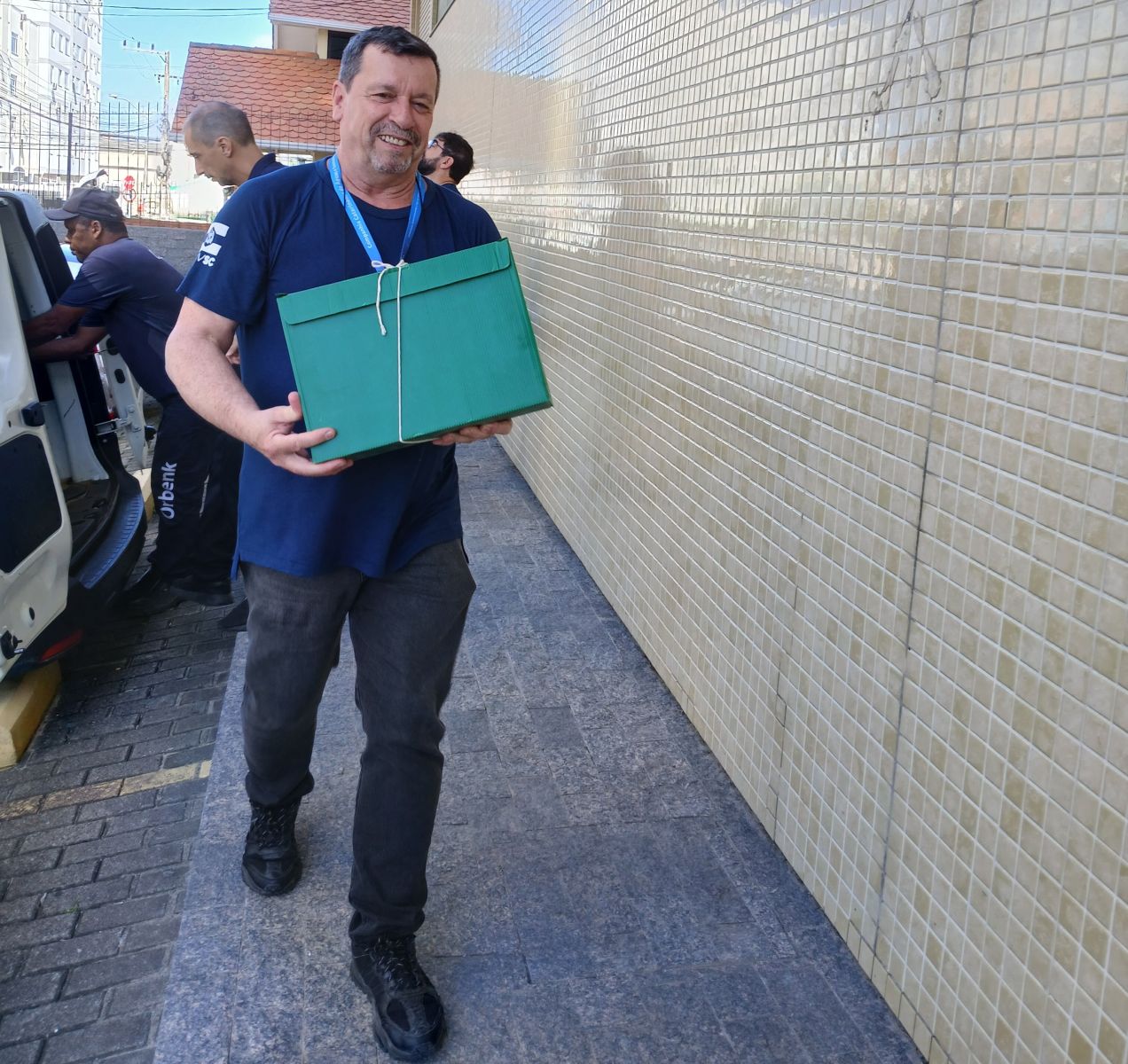 Além da responsável pela Gestão Documental, estiveram presentes na entrega dos documentos o assistente Administrativo, Luís Renan da Silva Martins, e uma equipe de apoio da Divisão de Transportes (DITRA) e de terceirizados que auxiliaram na movimentação dos volumes. Já a equipe do APESC foi coordenada pela gerente do Arquivo Permanente, Juçara Nair Wollf, e pelo historiador Luciano Von Frühauf.