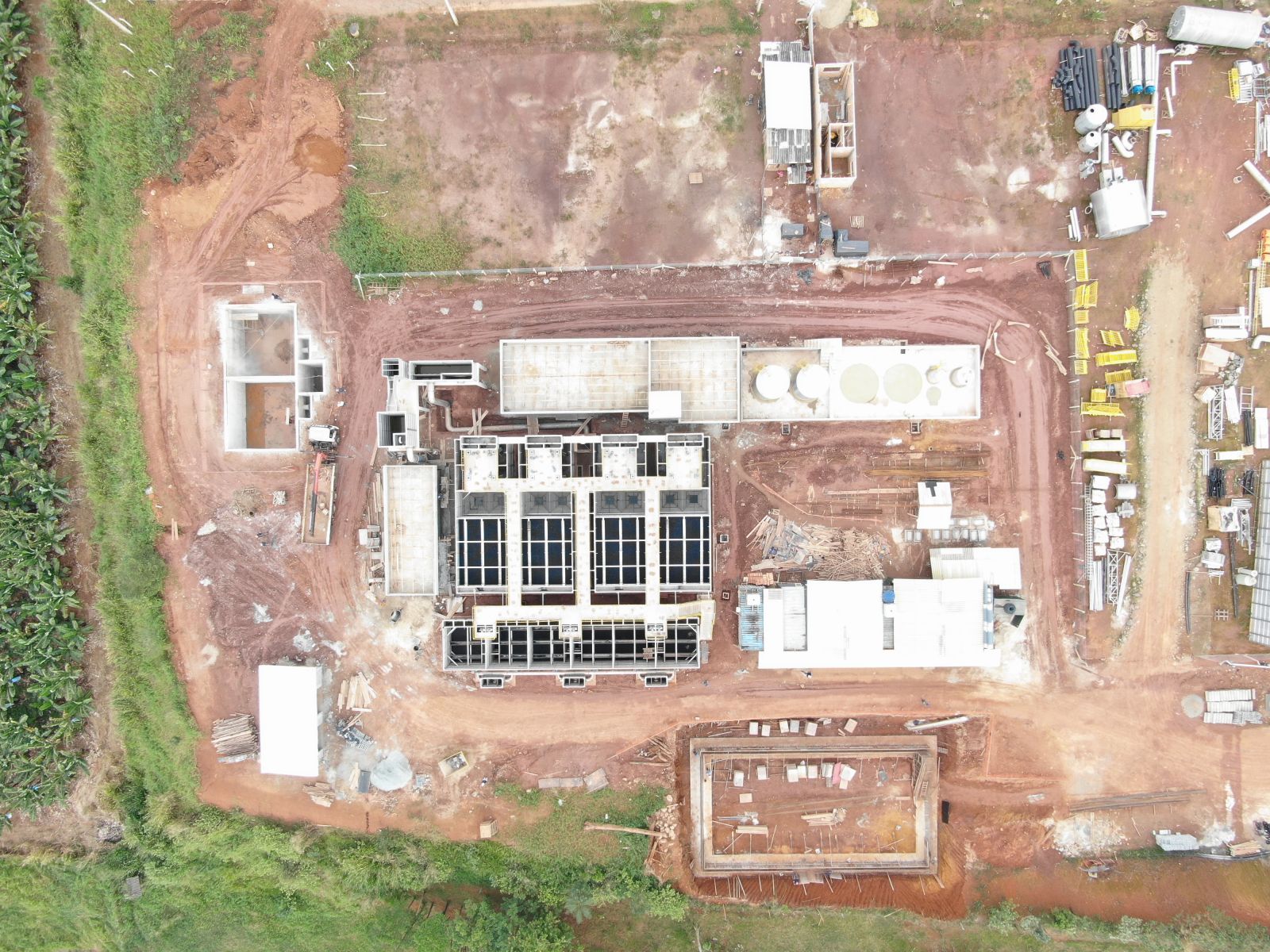 Entre as estruturas pré-fabricadas, estão os tanques de decantação e o floculador, que trabalham na remoção de impurezas da água. Já outras partes da ETA, são executadas no local. “Hoje, a execução já está em fase de acabamentos no edifício de operações, no edifício de armazenamento de cloro e no chamado tanque de equalização, que ajuda a equilibrar e regular o fluxo de água durante o processo de lavagem”, afirma Poliane.