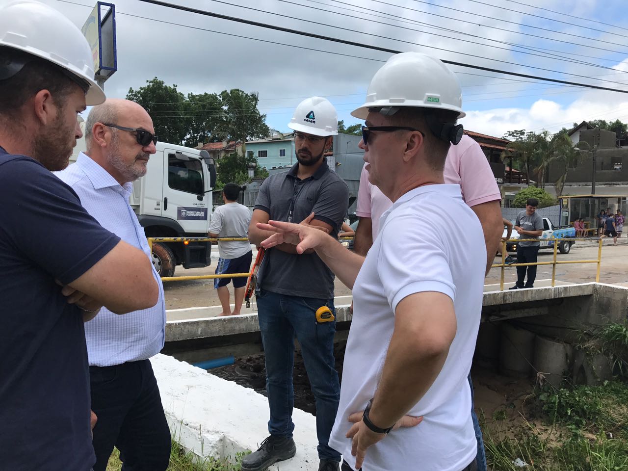 Na tarde desta sexta-feira, o presidente Gallina acompanhou o prefeito Gean Loureiro em vistoria à Ratones. Em meio à inspeção, o dirigente e funcionários da CASAN receberam o reconhecimento de moradores, do intendente do bairro, Vilmo Hercílio Laurindo, e da presidente do Conselho Comunitário, Nilda de Oliveira.