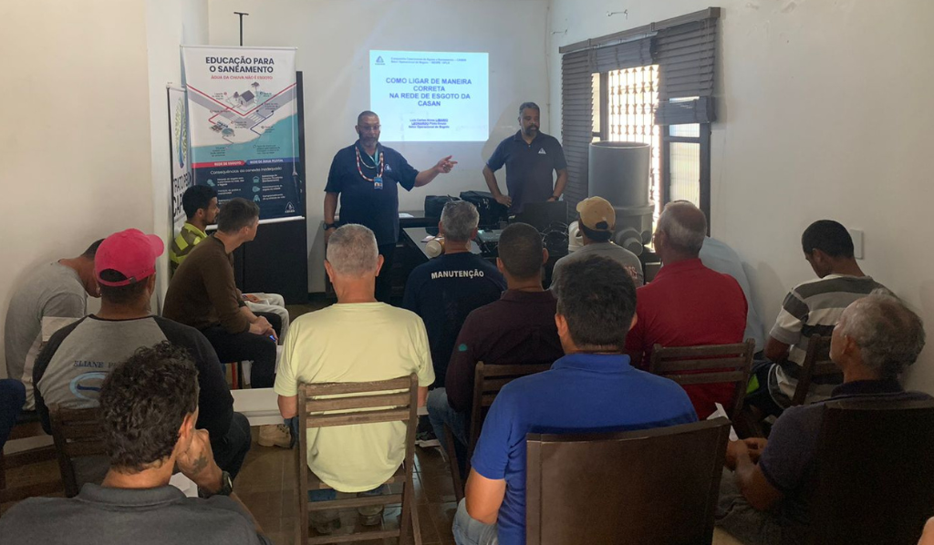 Os encanadores, instaladores hidráulicos e pedreiros foram capacitados em curso gratuito oferecido pela Companhia, pois o SES Ingleses/Santinho possui Caixas de Inspeção diferentes das tradicionais.