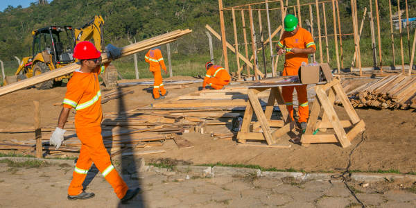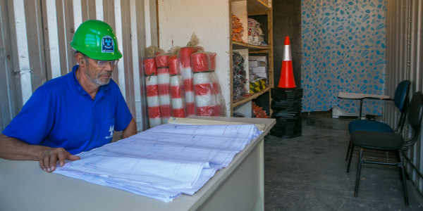 O canteiro de obras do consórcio construtor Trix/Infracon está montado na Servidão Três Marias, 164, dentro do terreno onde será construída a Estação de Tratamento de Esgotos.