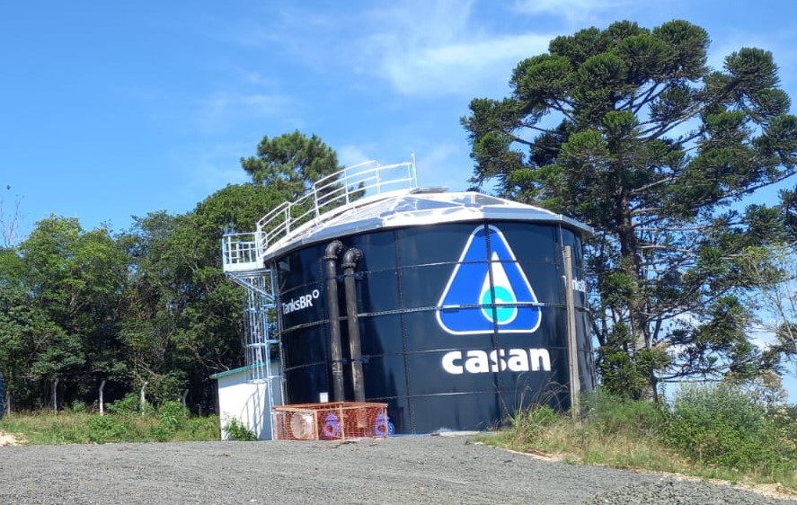Outro tanque de 350 mil litros, em aço vitrificado, vai atender a região central, beneficiando 6 mil pessoas. As obras estão em etapa final e a meta da Companhia é colocar em operação neste primeiro semestre de 2024.