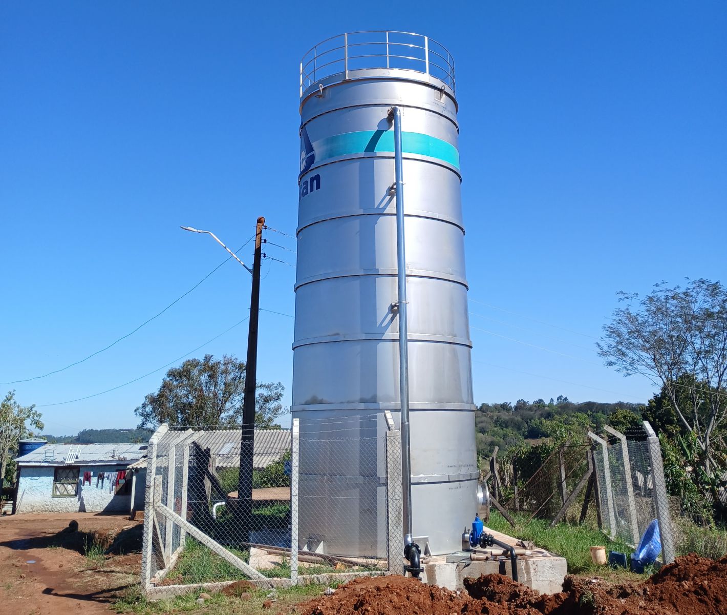 Com capacidade de 100 mil litros de água, o novo tanque em aço inox permitiu a desativação de um reservatório antigo, proporcionando mais segurança hídrica para 500 moradores da região.
