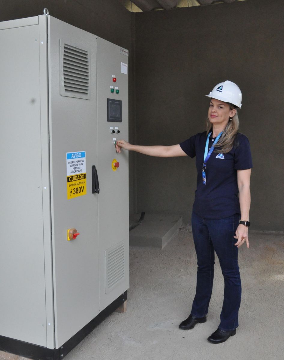 Roberta Maas dos Anjos, presidente da CASAN, durante evento que marcou o início da fase de testes da Estação de Tratamento de Esgoto (ETE) de Rio do Sul