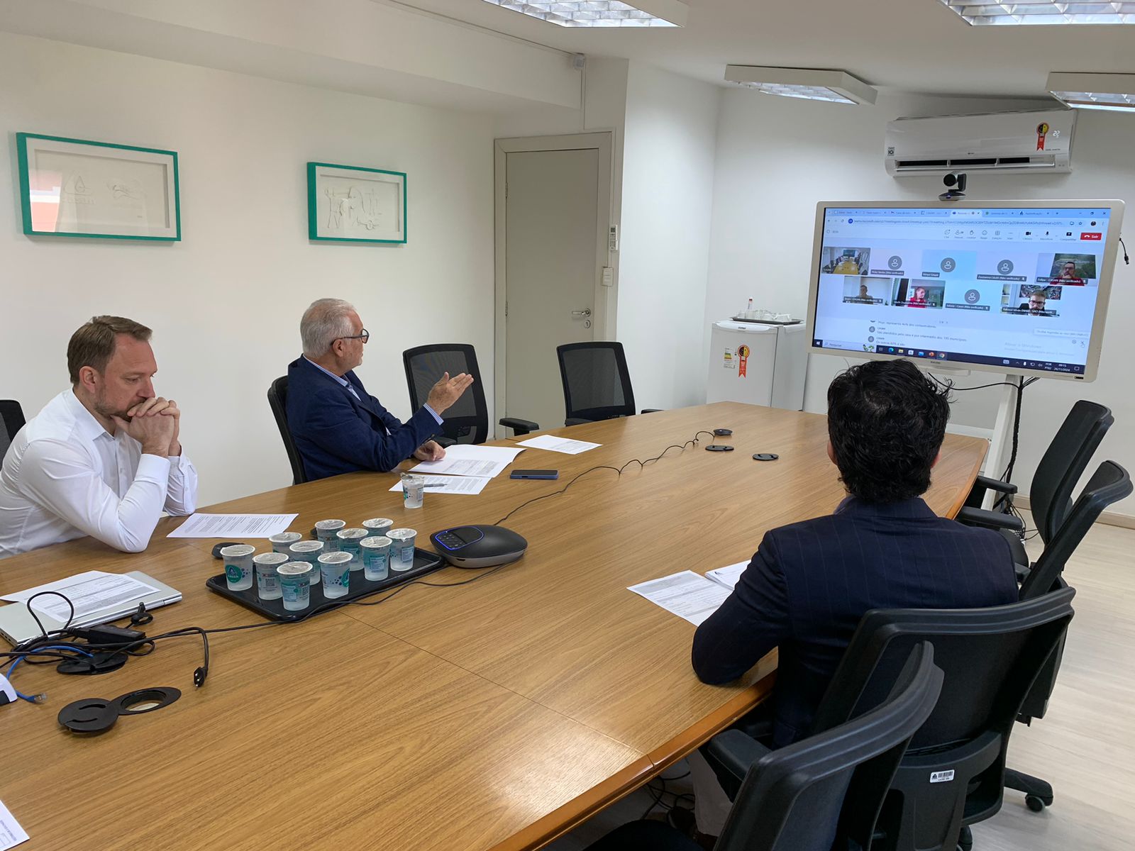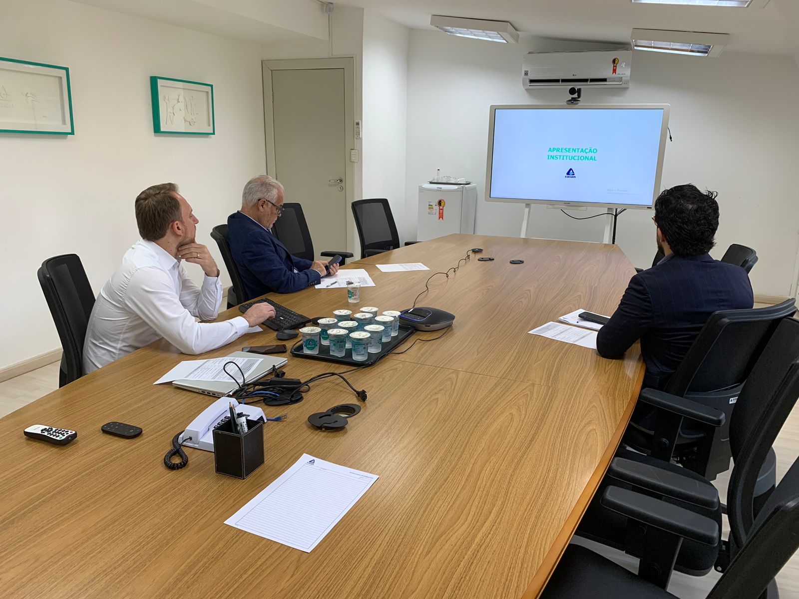 Desse lado do Atlântico, também participaram o assistente da Diretoria Financeira da CASAN, Carlos Ivan Sturzbecher, o Assessor de Relações Interinstitucionais, Anderson Miguel Chaves de Cordeiro, e o Cônsul-Geral da Hungria, Zsuzsanna László, que contribuiu auxiliando com a tradução das falas. As empresas que estiveram presentes foram: Hungarian Water Partnership; Innowaste Kft.; Hungarian Water Technology Corporation; Inwatech Környezetvédelmi Kft.; Organica Technológiák Kft.; Pureco Kft.; e Trinity Enviro Kft.