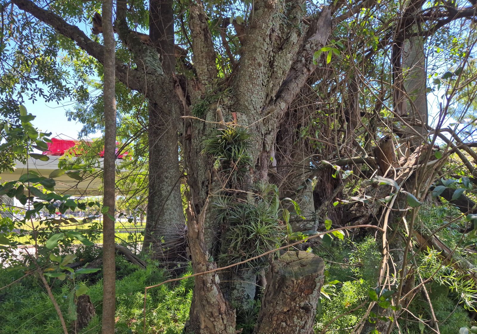 Nas árvores cortadas no terreno da ETE Insular foram resgatadas pequenas orquídeas, bromélias e samambaias, espécies epífitas que utilizam troncos e galhos como suporte para se fixar. O cuidado leva em conta a importância paisagística e ecológica dessas plantas que criam microambientes, fornecendo água, abrigo e alimento para insetos e outros animais.