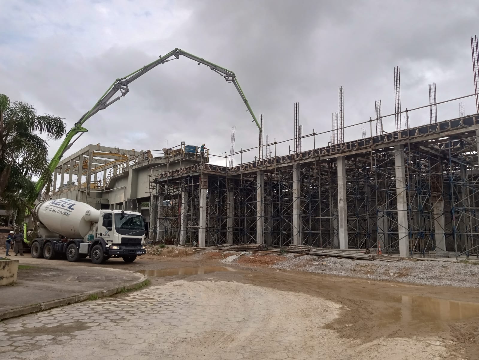 A CASAN (Companhia Catarinense de Águas e Saneamento) executou uma nova etapa de concretagem das obras da Estação de Tratamento de Esgoto Insular, em Florianópolis. A operação foi a primeira executada neste ano e utilizou cerca de 22m³ de volume de concreto trazido em três caminhões-betoneira. O material foi usado na finalização das paredes do tanque de lodo adensado, que atua no armazenamento de lodo, e na laje da casa de sopradores e biofiltros, que recebe os equipamentos responsáveis por injetar ar dissolvido no efluente.