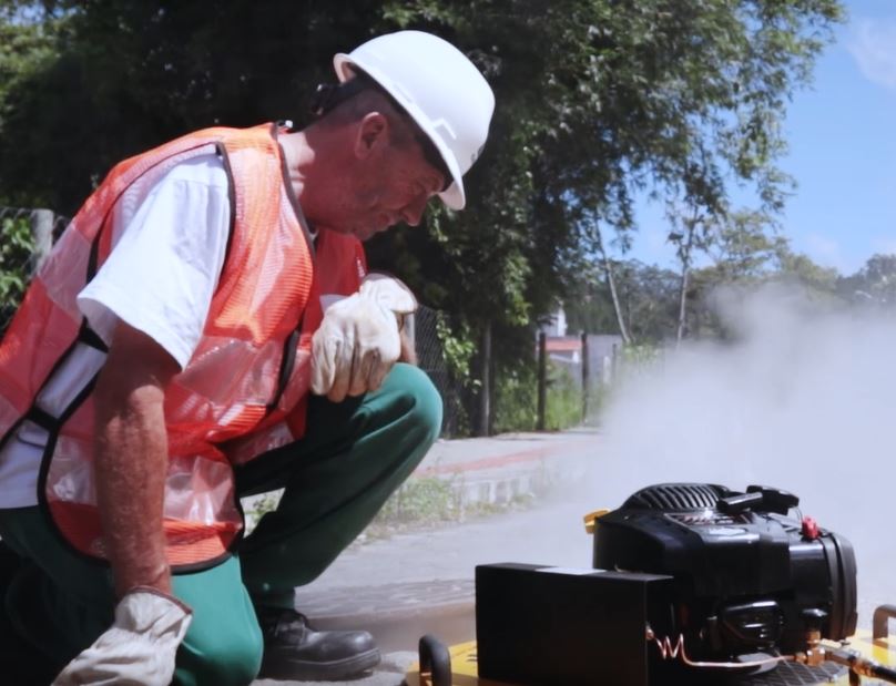 O Teste de Fumaça é executado com um equipamento especial que avalia, ao insuflar fumaça nas redes, se há ligações inadequadas, tanto dos moradores quanto dos canais de drenagem que são instalados apenas para transportar água da chuva (canal pluvial).