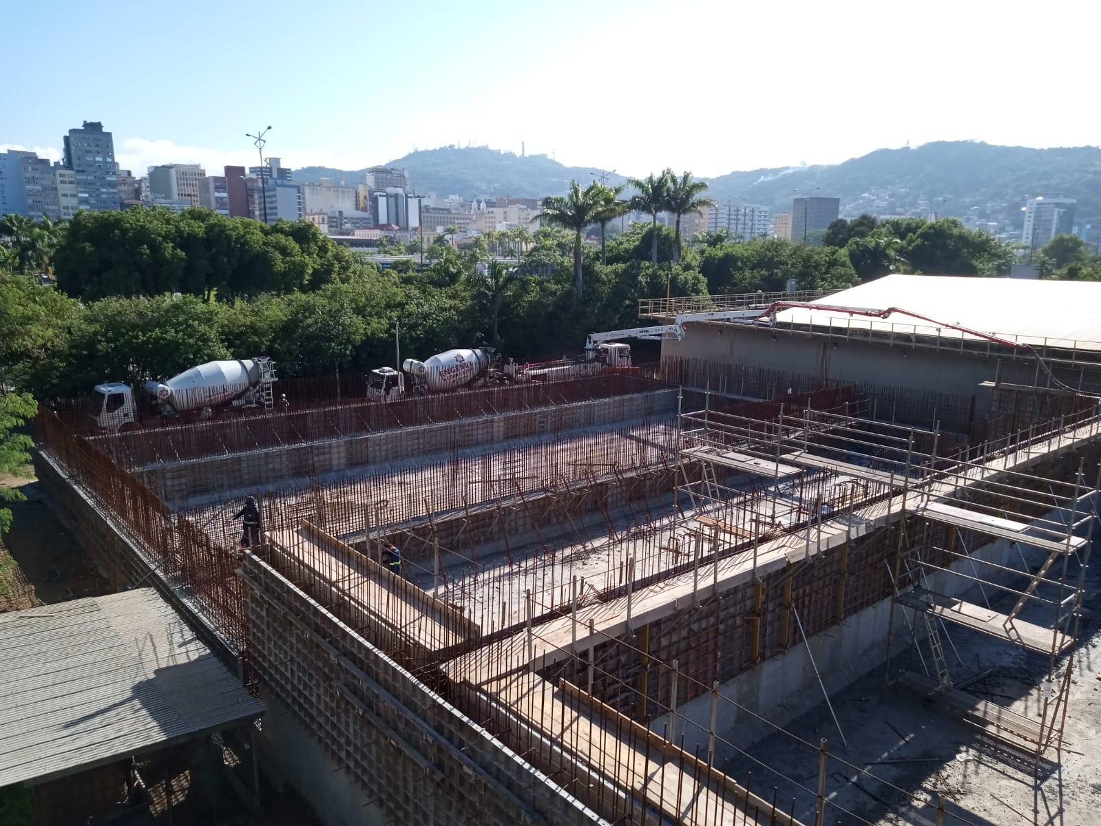 A CASAN executa nesta terça- feira (16), uma nova etapa de concretagem na Estação de Tratamento de Esgoto Insular, localizada na cabeceira da Ponte Pedro Ivo Campos, em Florianópolis.