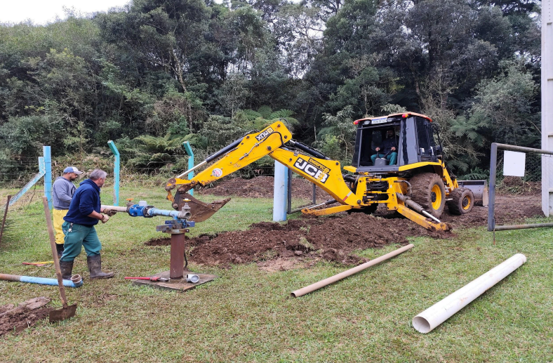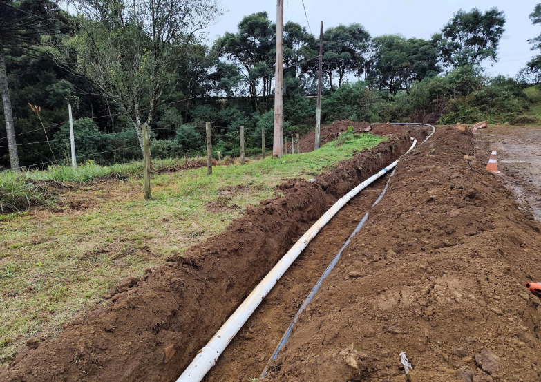 Instalação de novas redesA equipe também executou uma obra de melhoria que necessitava de atenção na mesma via. Foram assentados 630 metros de rede de 110mm e 150mm. Para a rede de 110mm, o material foi substituído para PEAD, um polímero de alta densidade mais flexível que permite mais agilidade na instalação da rede. O investimento foi de R$ 38.832,91. O trabalho foi conduzido pela equipe de São Cristóvão do Sul em conjunto com o operador de equipamentos pesados, com Rodrigo Santiago.