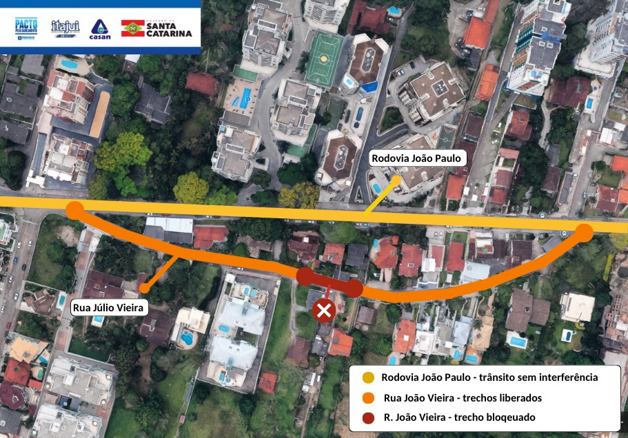 No Cacupé, será feito o assentamento de rede coletora de esgoto na Servidão Maria Filomena de Souza. As obras poderão causar interferência no trânsito com a interdição momentânea da via para execução de escavação e movimentação de máquinas de apoio no período das 7h às 18h. A CASAN orienta aos moradores que, durante o período de obras, deixem a via liberada estacionando seus carros na garagem ou vias próximas.
