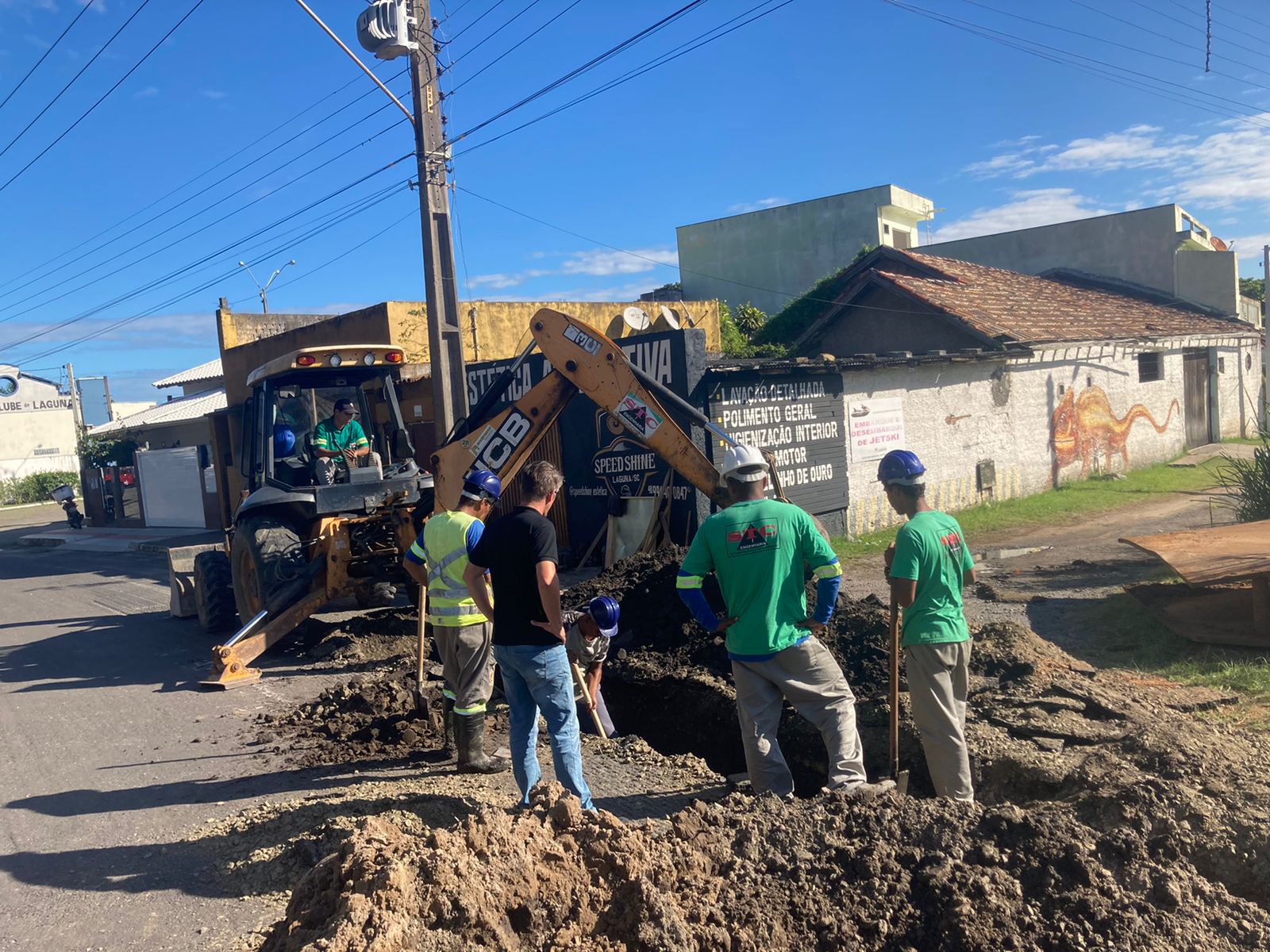 Equipes da CASAN de Laguna iniciaram nesta segunda-feira, 8, as obras da nova rede de esgoto entre a avenida Colombo Machado Salles, e rua Prefeito Guimarães Cabral, proximidades do Colégio Stella Maris, em direção ao Clube Xavante, no bairro Magalhães.