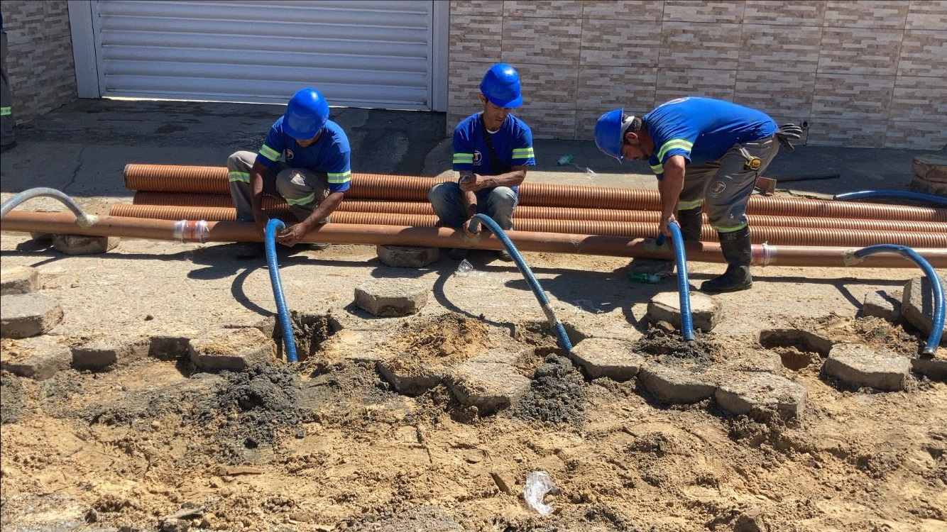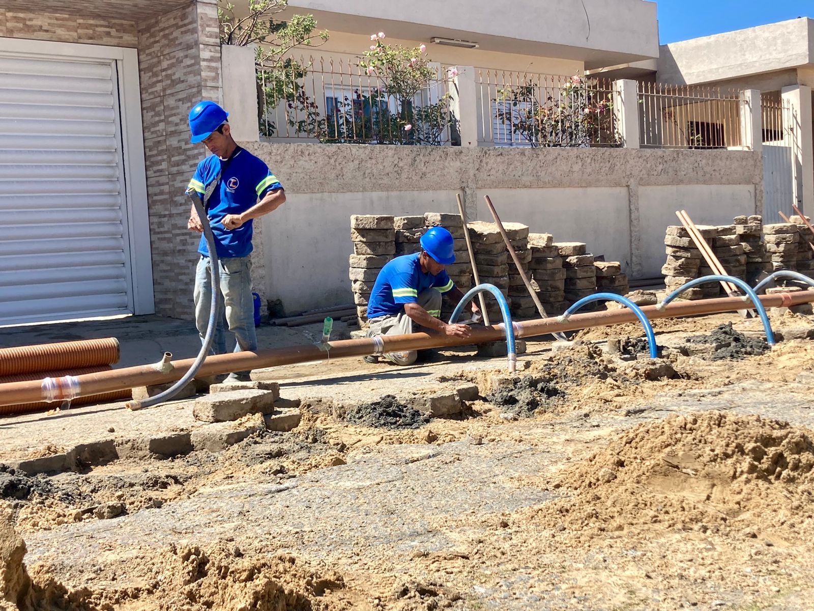 A Avenida Colombo Machado Salles, que liga o Laguna Internacional ao Centro Histórico, está recebendo implantação da rede de esgoto e melhorias na rede de abastecimento de água.