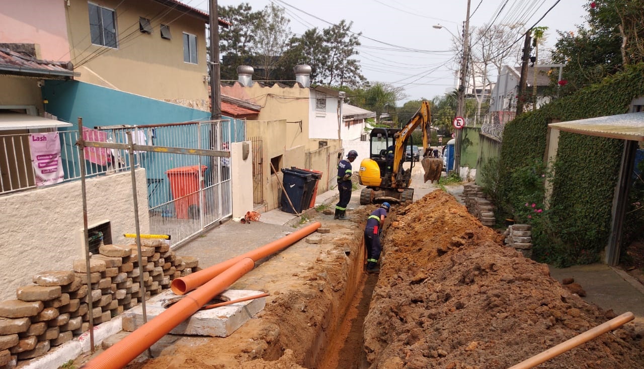 As obras de implantação de rede coletora do Sistema de Esgotamento Sanitário (SES) do Saco Grande, em Florianópolis continuam avançando. Na última segunda-feira (09), as equipes da CASAN (Companhia Catarinense de Águas e Saneamento) iniciaram um novo trecho na Servidão Casemiro Manoel Elesbão.