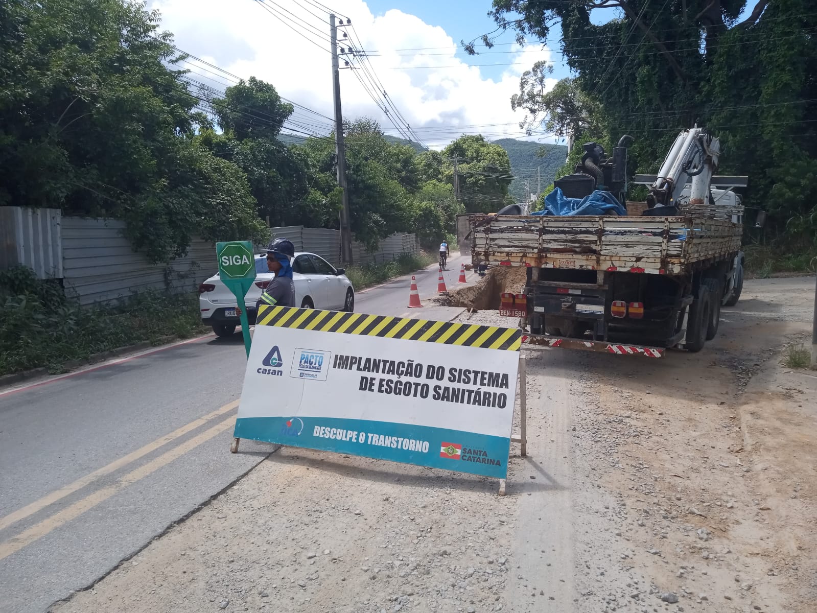 A CASAN (Companhia Catarinense de Águas e Saneamento) e a Prefeitura Municipal de Florianópolis iniciaram nesta segunda-feira (26) obras de assentamento de rede de esgoto em dois novos trechos do bairro Monte Verde. As obras são executadas na Rua Ingabaú e em uma via de passagem de pedestres utilizada para o acesso à Rua do Louro e à Escola Estadual Básica Professora Laura Lima.