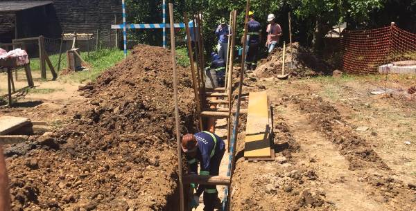 Trabalhadores implantam a rede coletora de esgotos