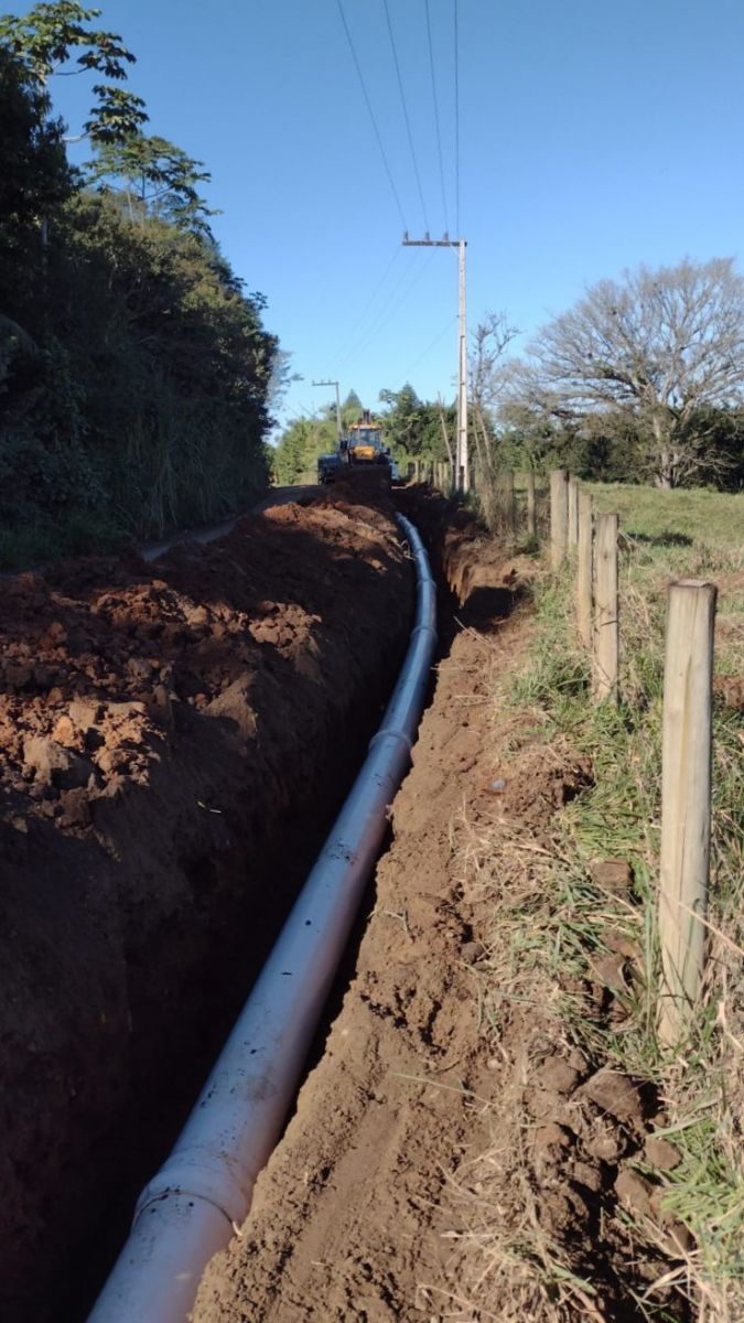 Os trabalhos de instalação da nova Estação de Tratamento de Água (ETA) de Araquari seguem o cronograma previsto, para manter a conclusão até o fim desse ano. E para que a Estação possa entrar em operação, uma etapa importante iniciou na segunda quinzena de junho – a instalação da adutora de água bruta, que vai conectar o Rio Piraí com a ETA. No total, serão quase 6 km de tubulação da adutora DN300, ligando o rio até a Estação.