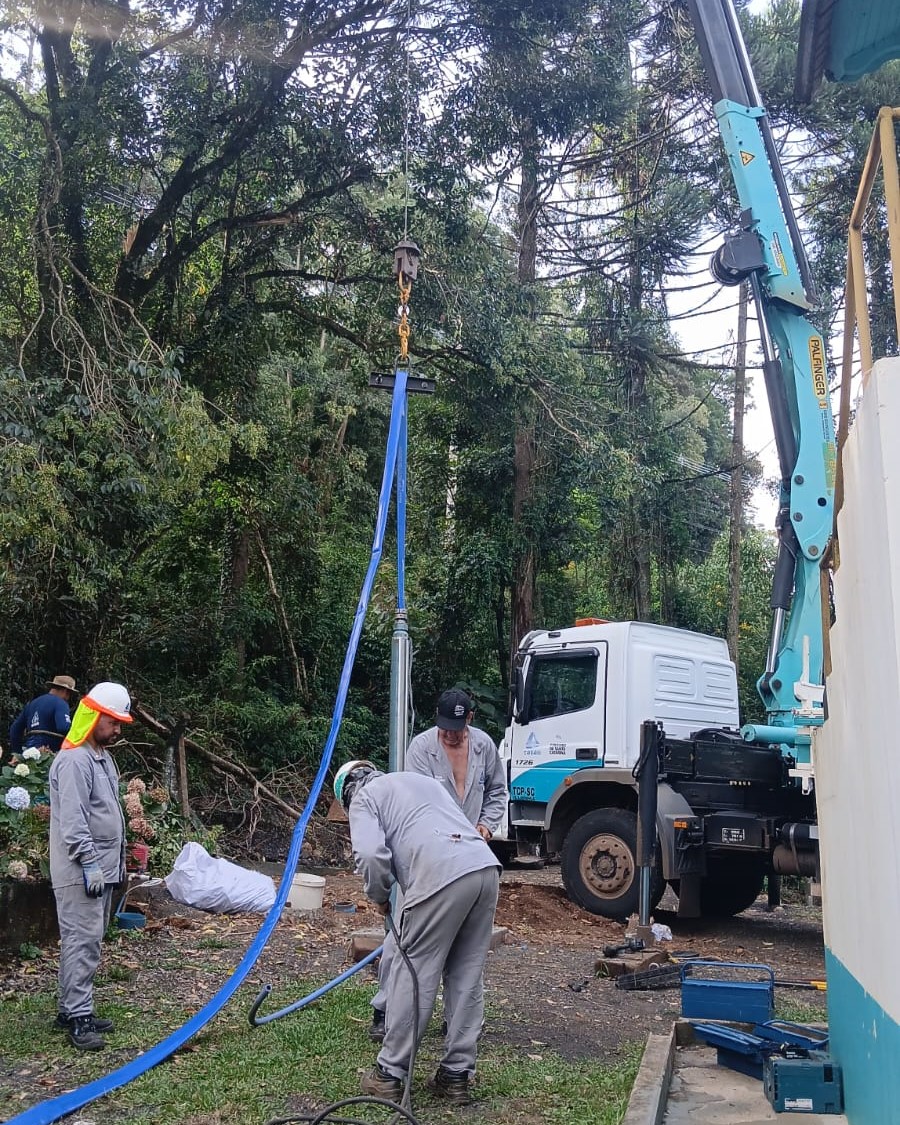 Para reforçar o abastecimento de Treze Tílias, município de nove mil habitantes do Meio Oeste de Santa Catarina, a CASAN (Companhia Catarinense de Águas e Saneamento) executa a instalação de um novo poço.