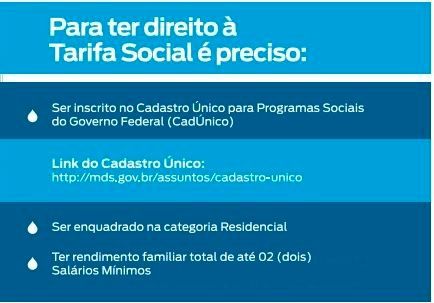 A Tarifa Social tem duração de 12 meses, com renovação mediante a atualização do cadastro.