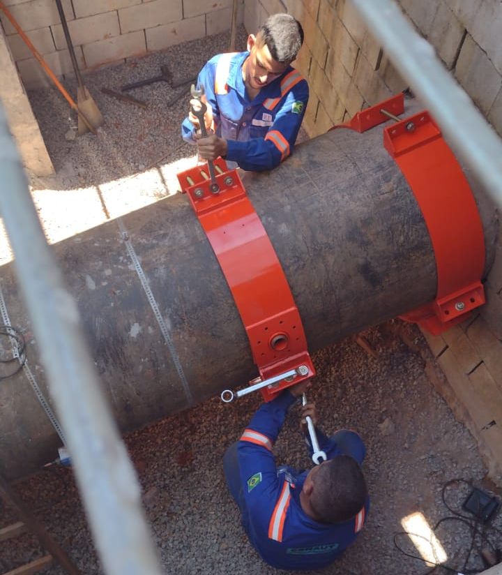 Instalação de equipamento macromedidor, para controle das quantidades de água tratada e distribuída