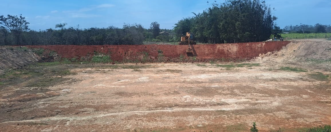 Área da futura Lagoa de Estabilização em Passo de Torres, com a geomembrana instalada. Foto: Acervo CASAN.