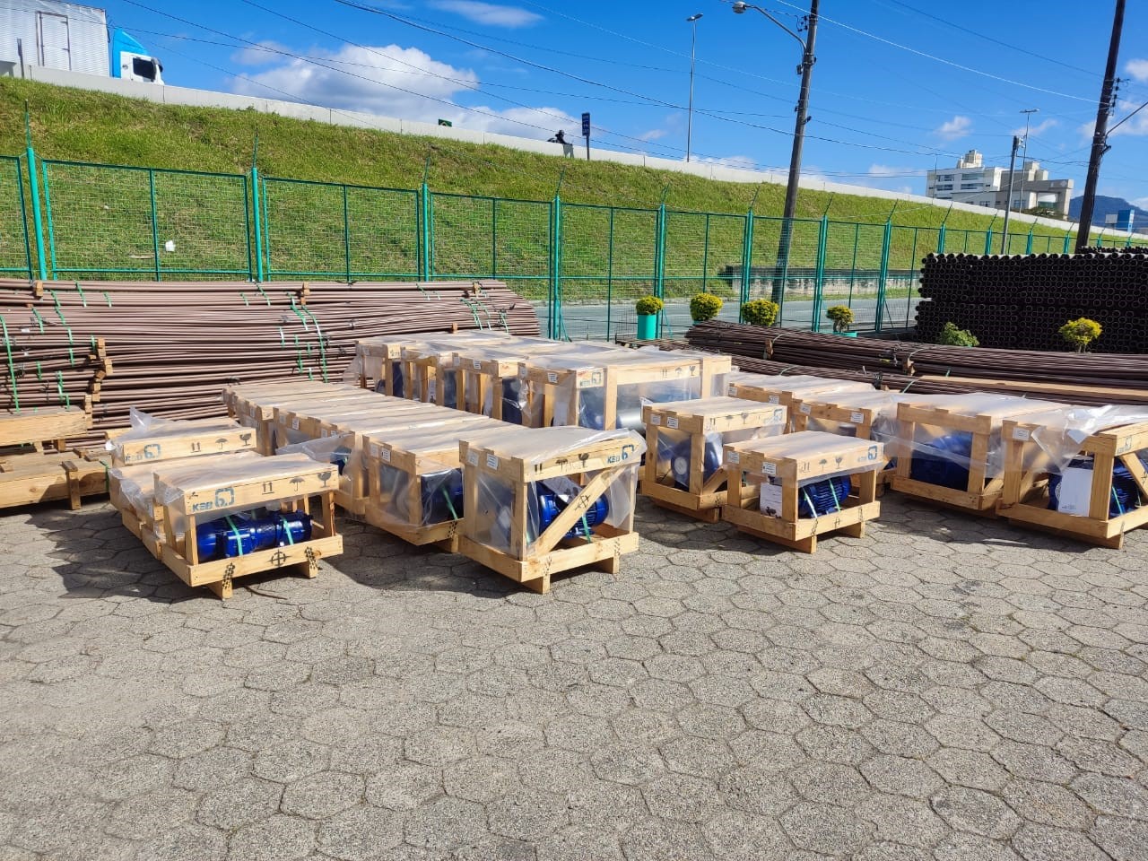 No que se refere a conjuntos motobomba, até o final deste ano estão sendo adquiridos 336 conjuntos submersíveis para estações elevatórias de esgoto e captação de água em mananciais superficiais, 94 conjuntos horizontais para estações de recalque de água tratada e água bruta, 180 conjuntos dosadores peristálticos para dosagem de produtos químicos com altíssima precisão, bombas submersas para poços profundos, entre outros.