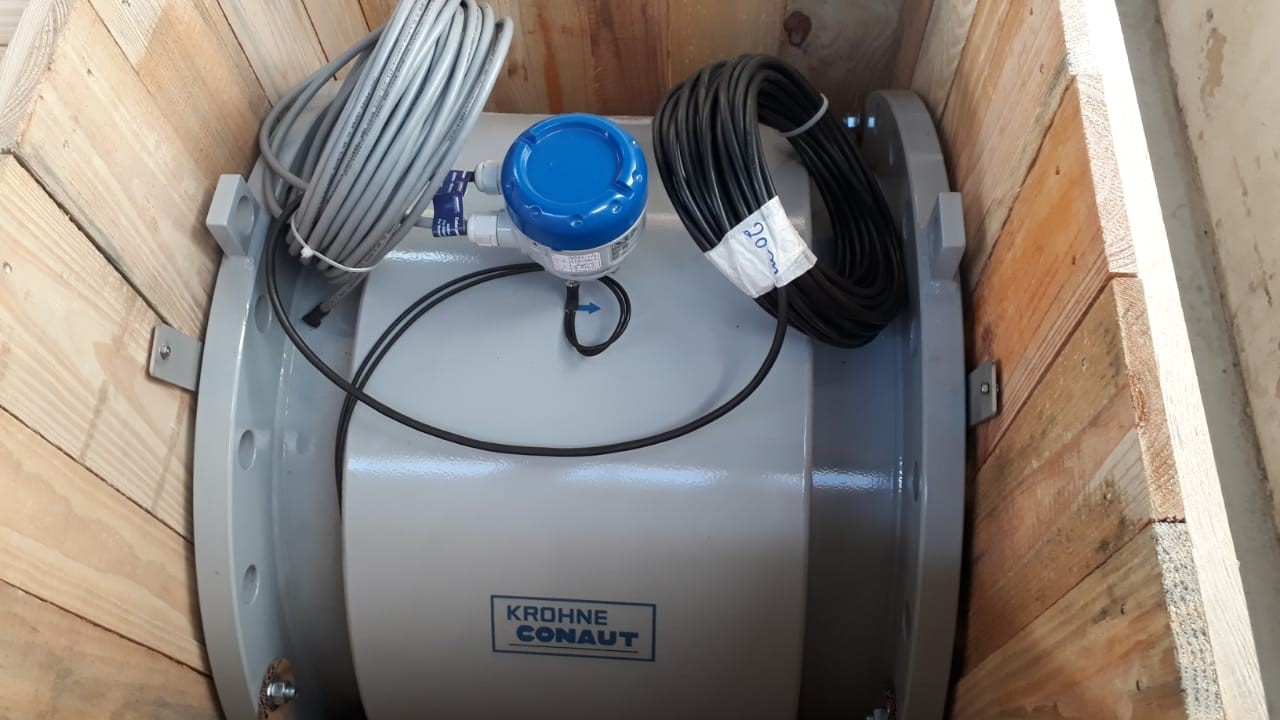 Medidor de Vazão Eletromagnético sendo inspecionado pela equipe técnica