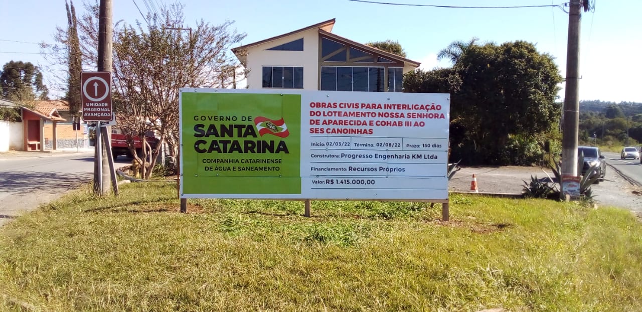 A CASAN está executando obras de ampliação da rede de esgoto de Canoinhas, no Planalto Norte do estado. Entre as ações está a implantação de 1,4 mil metros de rede coletora, uma estação elevatória e 3 mil metros de emissário nos loteamentos Nossa Senhora Aparecida e Cohab III, no bairro Piedade.