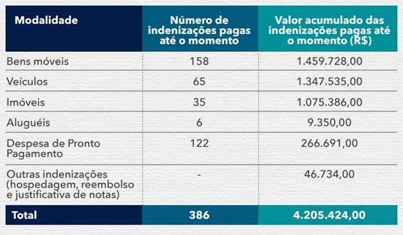 Do total de imóveis, 65 tiveram dano registrado, sendo que sete foram demolidos e outros 58 tiveram apenas danos parciais. Já dos 87 veículos recolhidos pela Companhia, 78 tiveram perda total, sendo restituído o valor da tabela FIPE, e nove tiveram orçamento para manutenção. A CASAN também verifica o caso de outros 11 veículos que foram atingidos e não foram recolhidos para fazer o devido ressarcimento.
