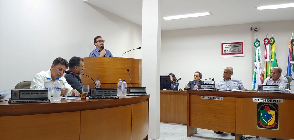 Para esclarecer a população de Passo de Torres a respeito das questões envolvendo o Sistema de Abastecimento de Água do município, o Superintendente Regional Sul/Serra, Gilberto Benedet Jr, participou de sessão da Câmara de Vereadores nesta terça-feira, dia 12.