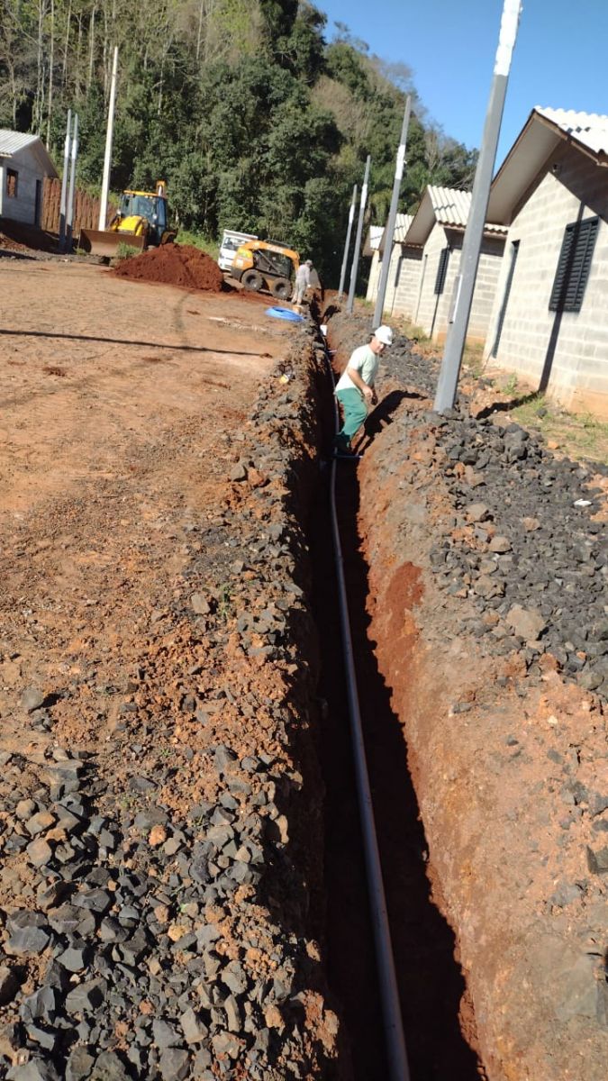 No Loteamento, estavam previstas, inicialmente, a construção de 65 casas, porém, até o momento, 59 foram feitas. A solicitação pela Prefeitura de Nova Erechim foi ainda em 2019, mas a obra de implantação da rede só foi possível agora, pois ocorreu um atraso na construção das casas devido um processo ambiental, que foi resolvido recentemente.