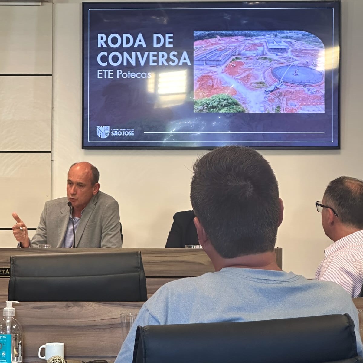 Esta semana a nova ETE Potecas foi tema de uma reunião na Câmara de Vereadores de São José. A CASAN (Companhia Catarinense de Águas e Saneamento) apresentou aos vereadores e comunidade o sistema de tratamento de esgoto da nova unidade que vai substituir as lagoas de estabilização.