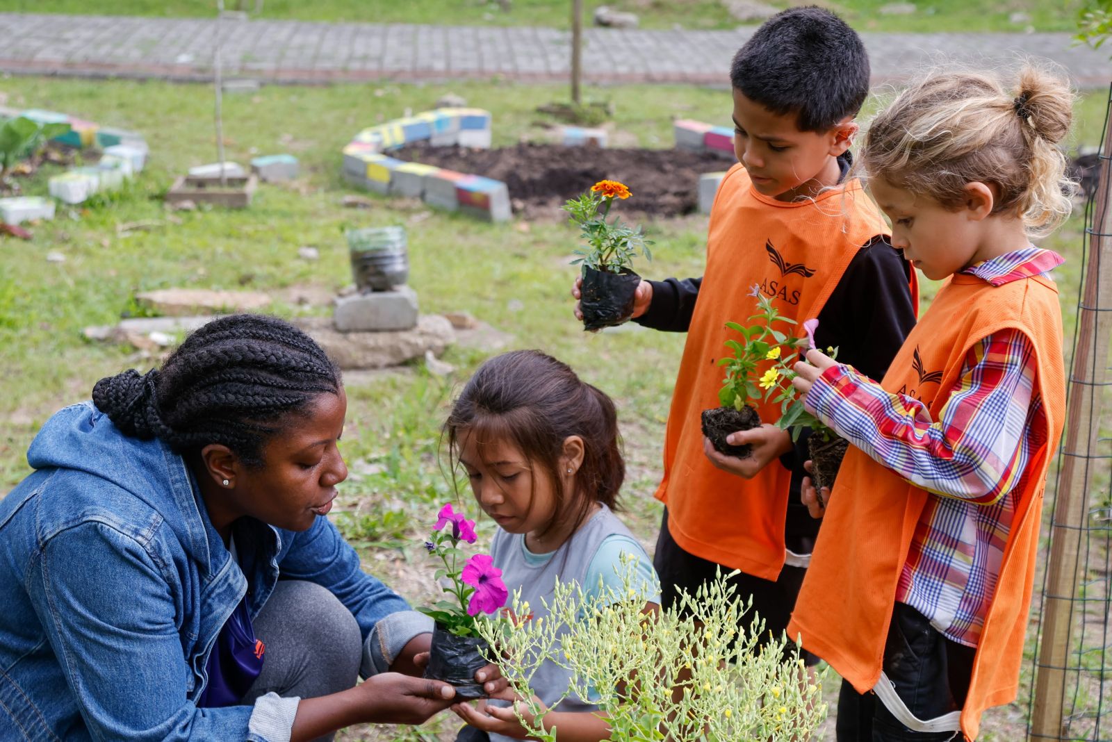 Foram distribuídas mudas de alface (lisa, crespa e roxa), cebolinha, cinco de berinjela, brócolis, cinco e de pepino, estimulando a revitalização da horta e o contato das crianças com práticas sustentáveis.