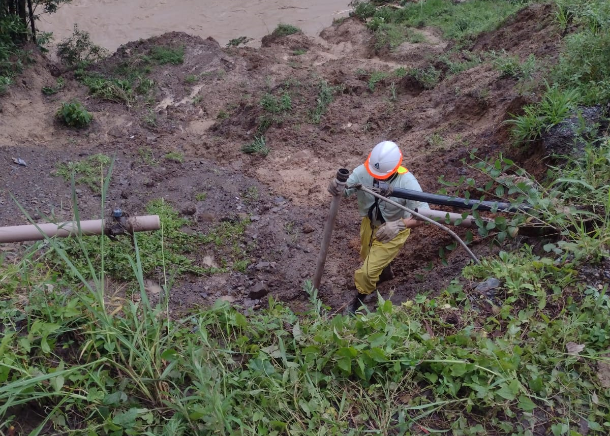 Colaborador atuando no conserto de Adutora em Urubici. Foto: Acervo CASAN.