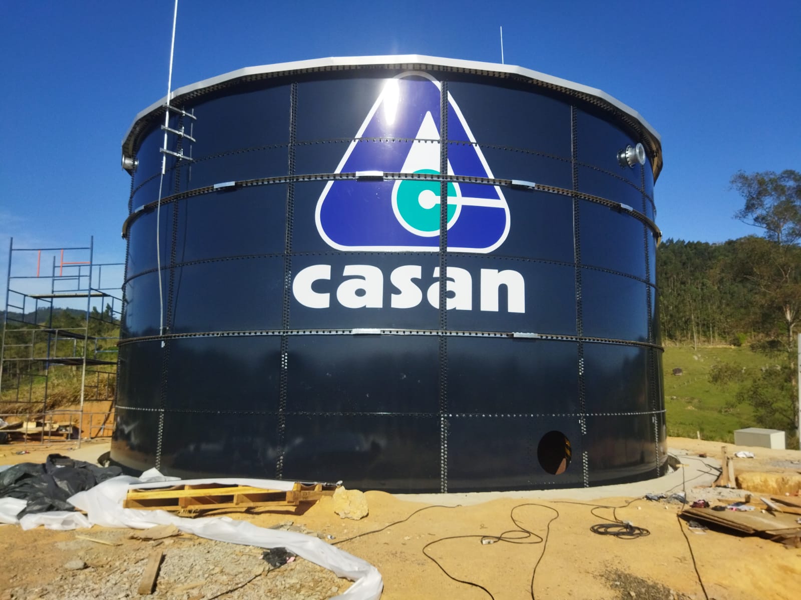 Imagem de um reservatório de Aço Vitrificado, modelo que será instalado em Paulo Lopes. Foto: Acervo CASAN.