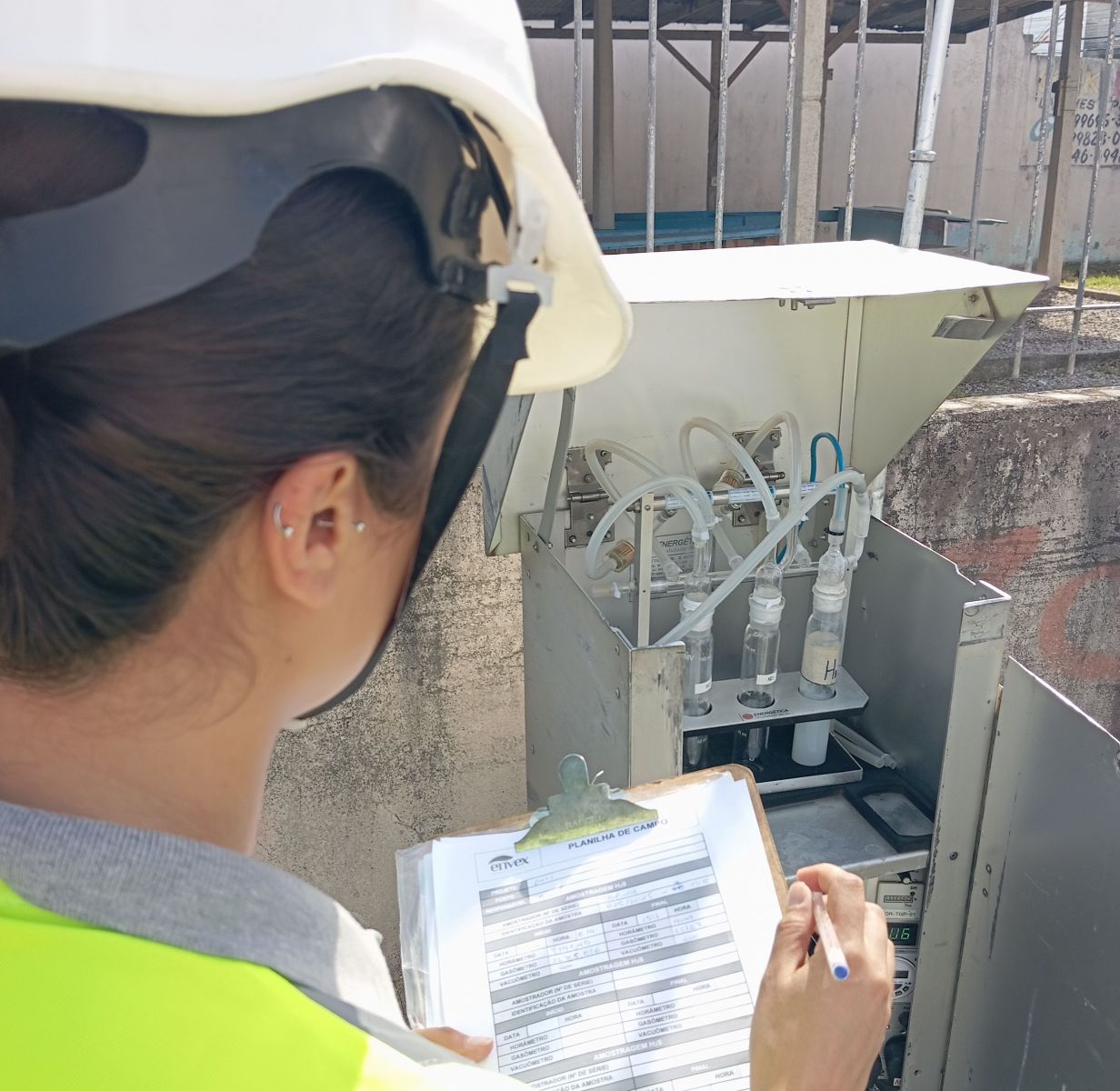 Uma empresa especializada realiza o monitoramento com um equipamento chamado de Trigás, que é um amostrador de gases de pequenos volumes que faz a sucção do ar atmosférico e coleta os compostos de Sulfeto de Hidrogênio (H2S), gás que possui um cheiro distinto e desagradável.