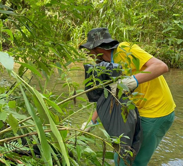 100kg de resíduos como garrafas pet, latinhas de cerveja, garrafas de vidro e bolsas plásticas na Barra do Rio São Bento