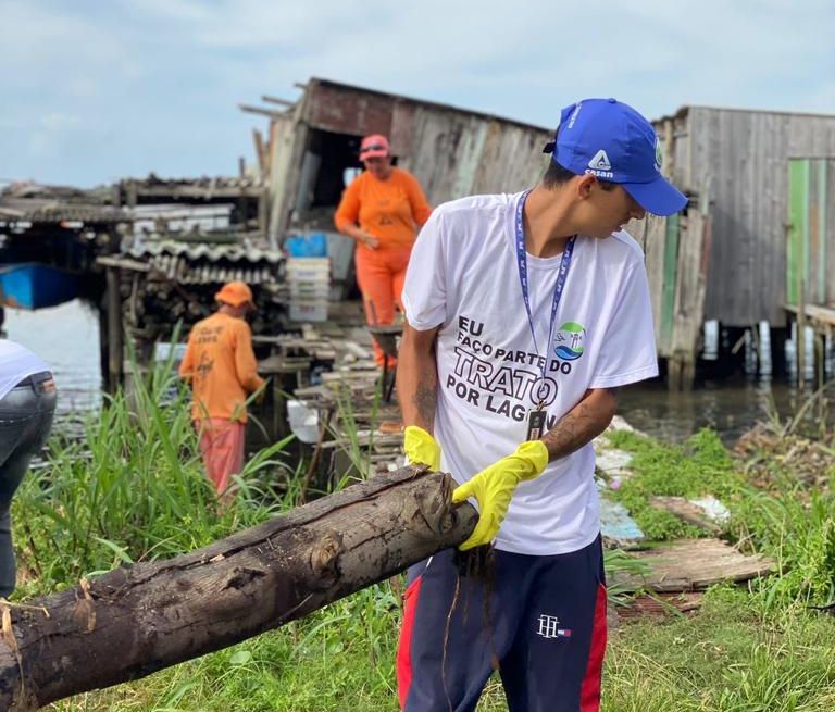 Como parte de sua agenda para marcar o mês do Dia Mundial da Água, a CASAN promoveu no último sábado ações de limpeza e conservação com as equipes dos seus Tratos pelo Saneamento e Gerência de Meio Ambiente.
