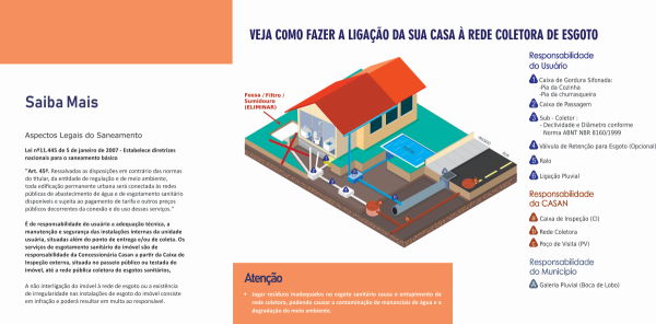 Na Agência da CASAN de Ituporanga o morador pode obter um fôlder que demonstra como deve ser feita essa ligação. Técnicos da Companhia estão à disposição para prestar informações e orientações.