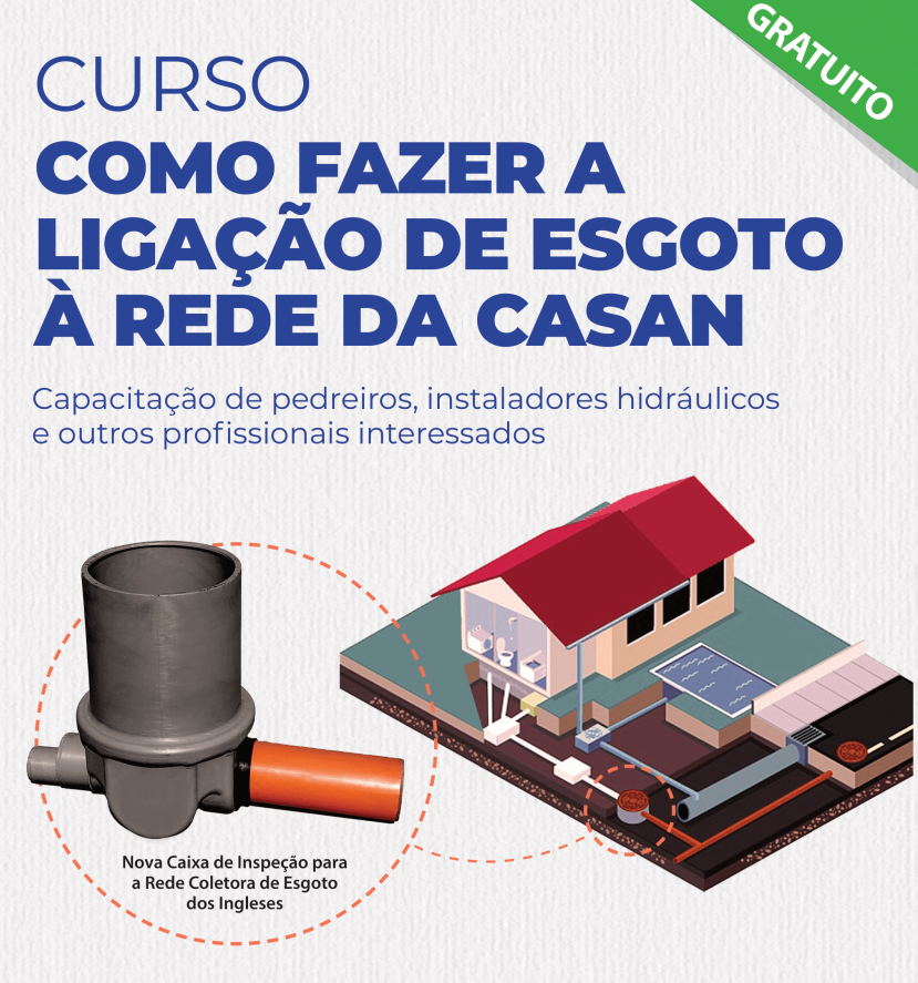 A CASAN vai oferecer na próxima sexta-feira, dia 12, mais um curso gratuito sobre a ligação de esgoto na região de Ingleses, em Florianópolis. A capacitação é voltada para encanadores, pedreiros e instaladores hidráulicos, entre outros profissionais. As inscrições devem ser feitas pelo whats (48) 98408-7304.