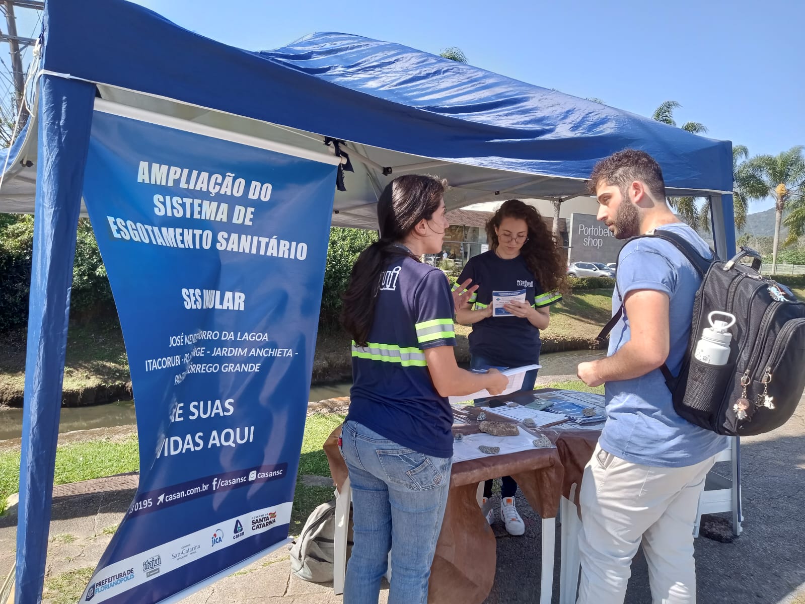 A CASAN (Companhia Catarinense de Águas e Saneamento) promove nesta quinta-feira (28) uma nova ação socioambiental para orientar a população sobre as obras do emissário terrestre do Sistema Insular de Esgotos de Florianópolis, realizadas próximo ao Shopping Villa Romana, no bairro Trindade.