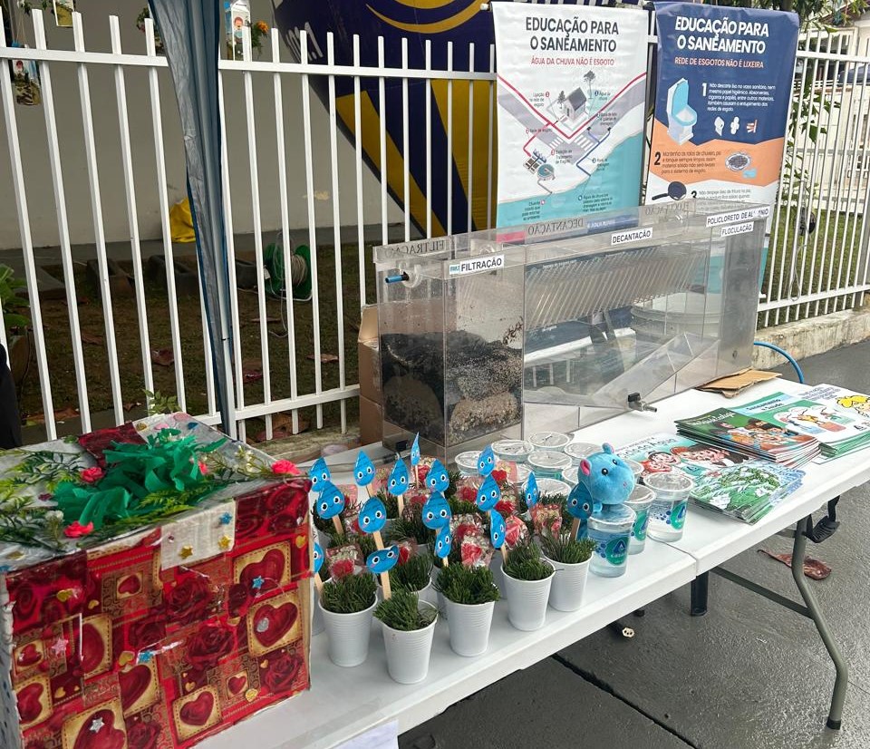 O estande da Companhia contou com materiais relacionados ao tratamento de água e esgoto. Entre eles, estava a mini ETA, que consiste em uma maquete simulando todo o trajeto que a água passa na Estação de Tratamento de Água, desde a sua captação até se tornar própria para consumo. No local, também foi possível verificar como são feitas análises de cloro na água.