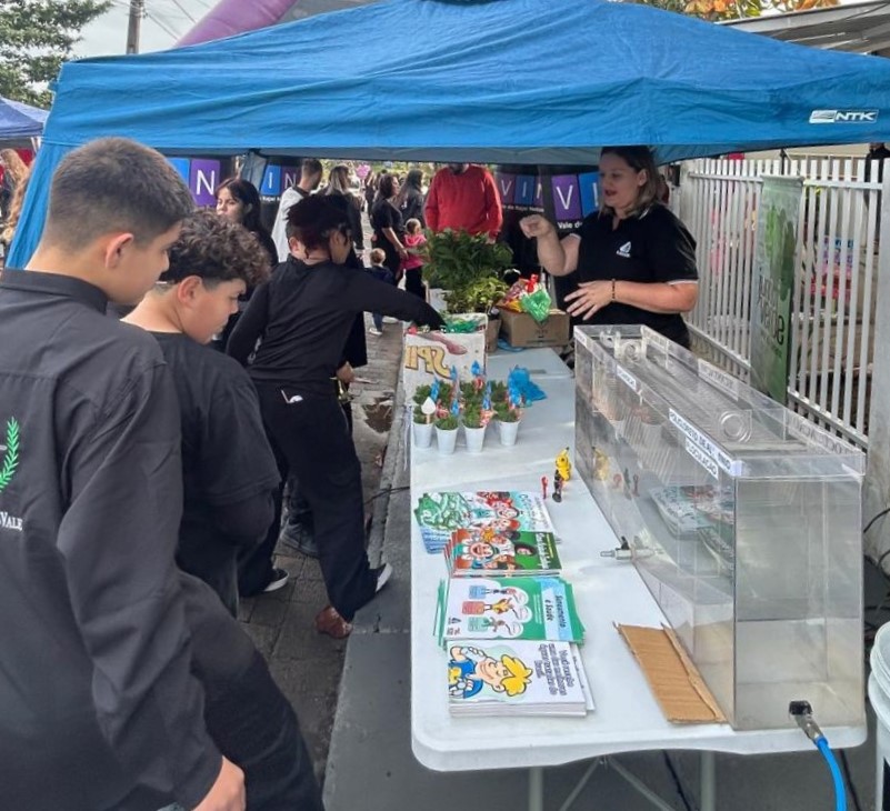 "Além do conteúdo educativo sobre o meio ambiente e a importância do saneamento básico, esse evento é importante para fortalecer o dever cívico dos cidadãos e o compromisso da CASAN com o desenvolvimento sustentável, aqui em Indaial e por todo o Estado de Santa Catarina", explica a chefe do Setor Operacional de Esgoto, Fernanda Amaral Gois, que colaborou com a organização do estande da Companhia no local.