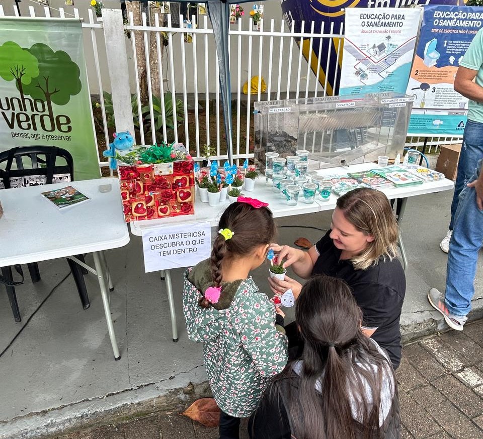 Já entre as ações voltadas diretamente para o público infantil, estava a “caixa surpresa”, de onde crianças podiam tirar doces com recados de conscientização ambiental, além de conhecer o Pinguinho, mascote da CASAN na cidade. No final, as crianças ainda levavam para casa com uma "Plantinha Surpresa”, que podia ser feijão ou milho, para aprenderem sobre a importância da água.
