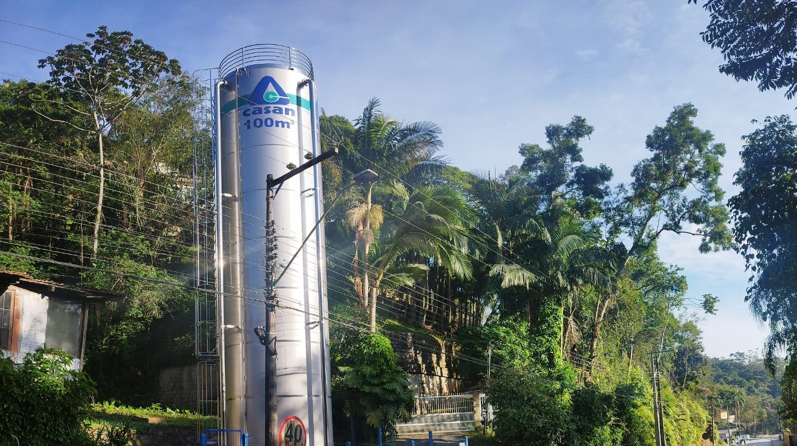 Reservatório de aço inoxidável em Santo Amaro da Imperatriz. Foto: Acervo CASAN.