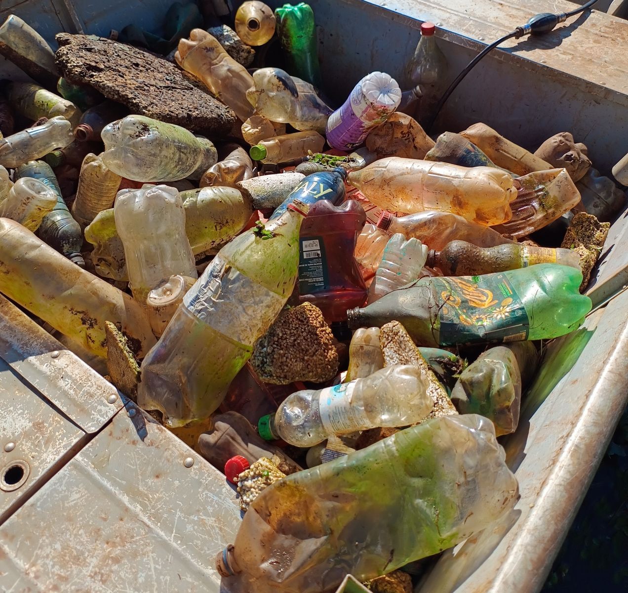 Garrafas encontradas no Lajeado São José. Foto: Acervo CASAN.