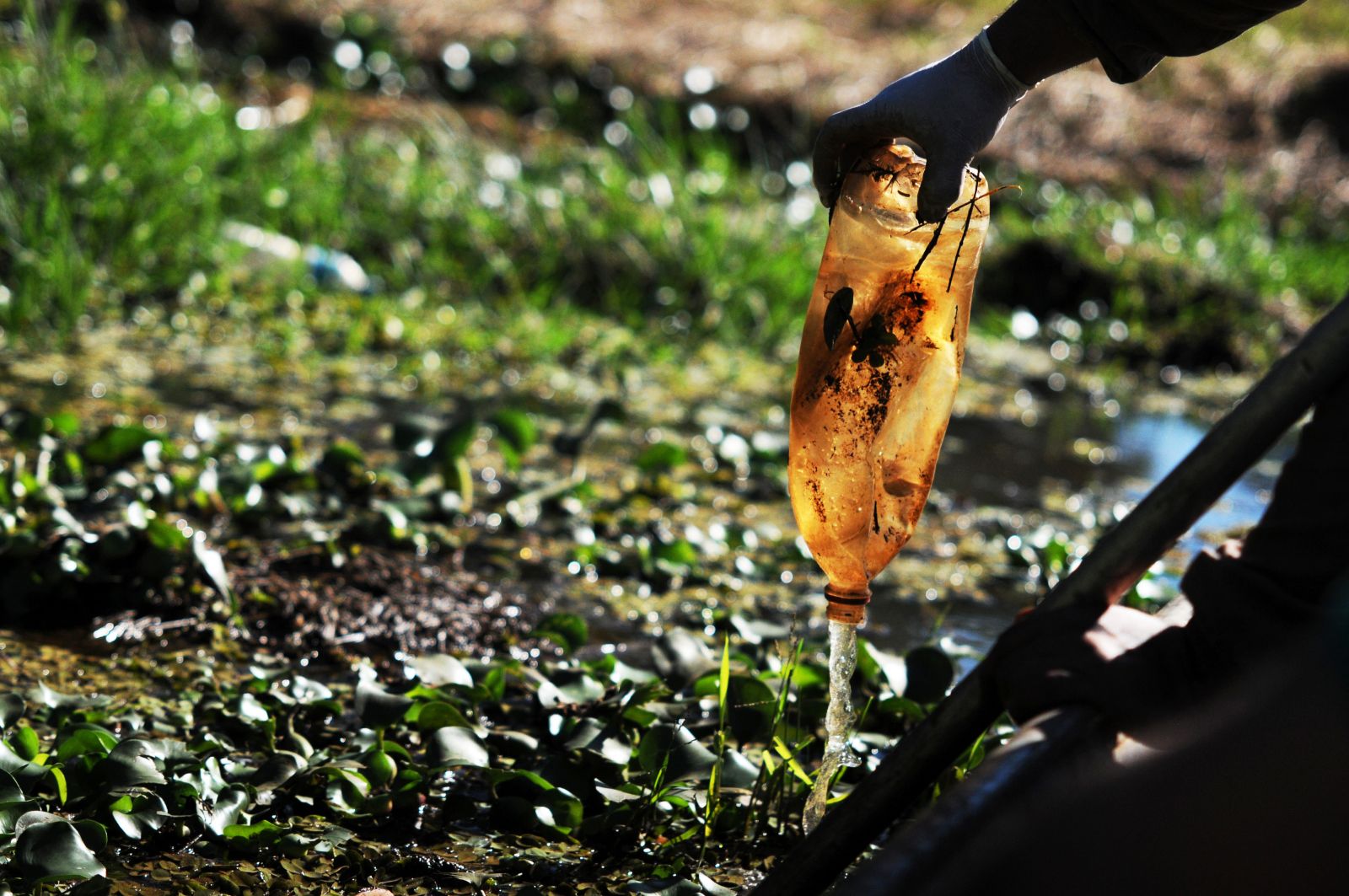 Imagem feita no último mutirão de limpeza no Lajeado São José, em abril. Foto: Acervo CASAN.