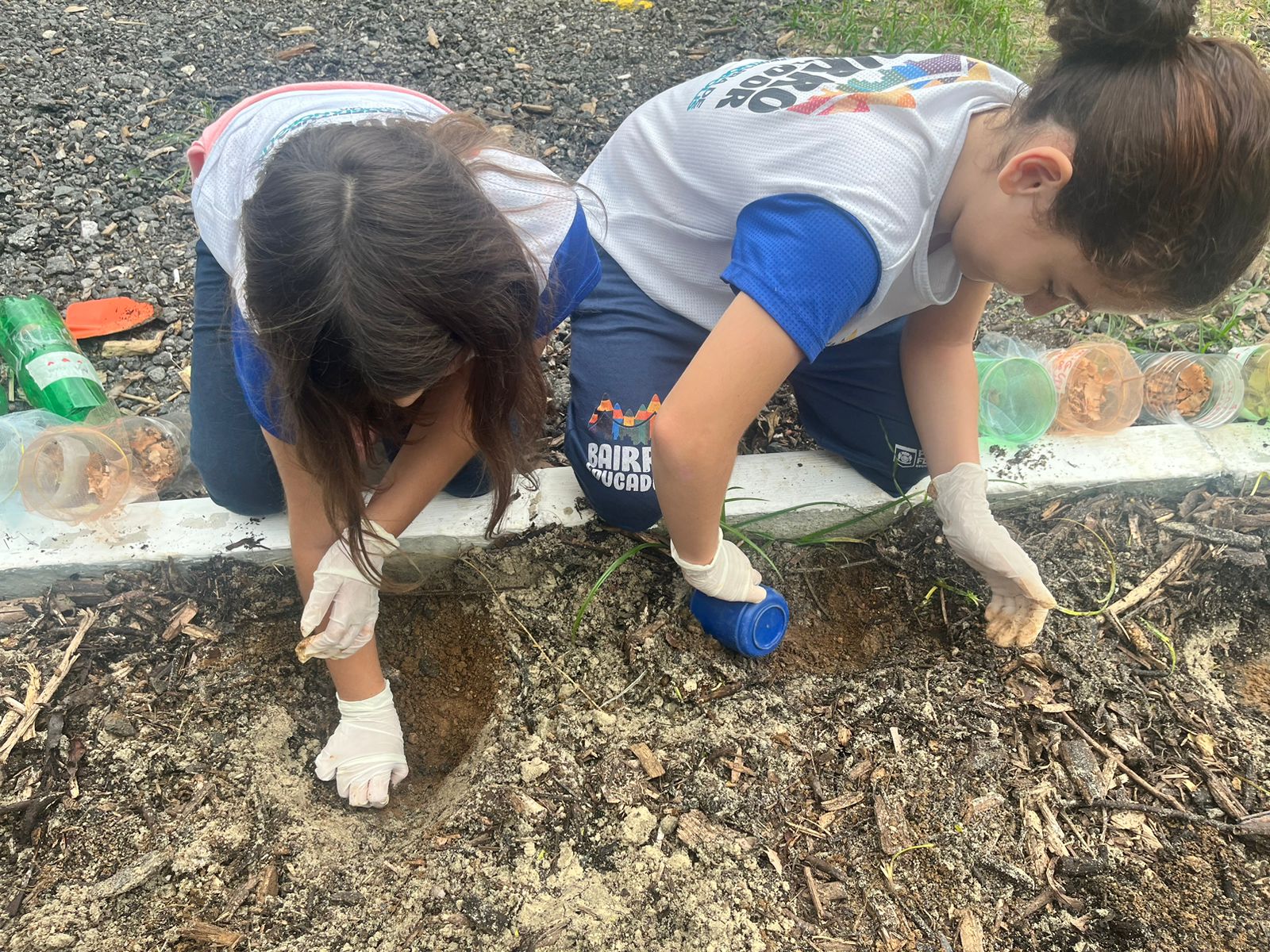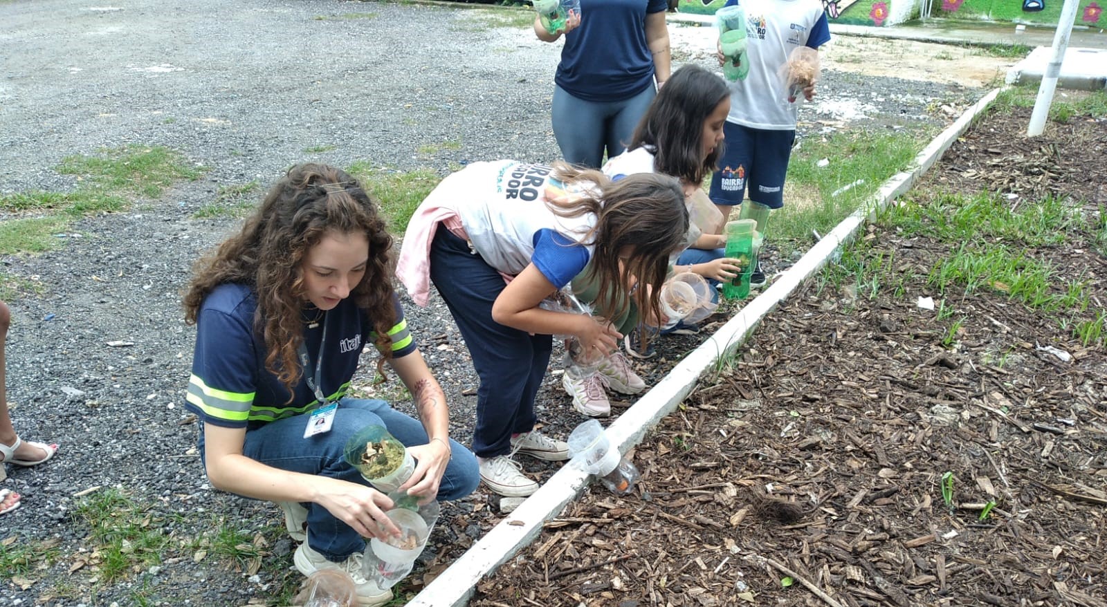 A ação deu sequência ao projeto iniciado em março, quando as crianças aprenderam sobre compostagem produzindo pequenas composteiras com garrafas PET. Agora, na segunda etapa, as educadoras ambientais Maria Júlia da Rosa e Jessica Saldanha Mancio exibiram vídeos educativos sobre o processo de transformação dos resíduos. Depois, as crianças participaram de uma atividade de pintura e plantaram mudas de hortaliças e plantas medicinais na horta do Projeto, utilizando o adubo gerado nas composteiras.